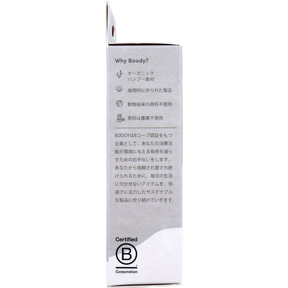 ●BOODYはBコープ認証をもつ企業として、あなたの消費活動が環境に与える負荷を減らすためのお手伝いをします。あなたから信頼され愛され続けられるために、毎日の生活に欠かせないアイテムを、快適さに注力したサステナブルな製品に作り続けていきます。