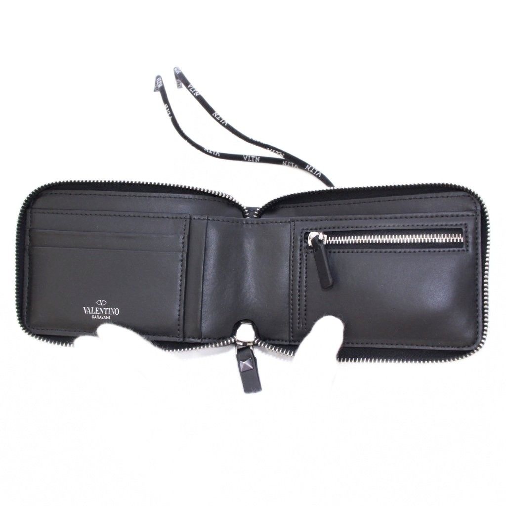 ヴァレンティノ ガラヴァーニ VALENTINO GARAVANI VLTN ストラップ付き財布 二つ折り財布 コンパクトウォレット ラウンドファスナー ロゴ プリント バイ 黒 ブラック 白 ホワイト BB