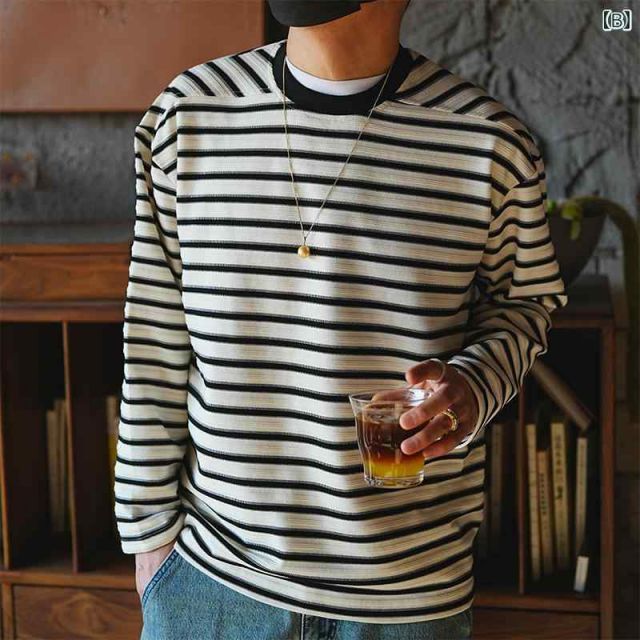メンズ ファッション 服 男性用 オシャレ シンプル 大人 かっこいい 大きいサイズ ストリート 紳士服 レトロ ストライプ ラウンドネック シャツ カジュアル ニット ブロック プルオーバー スウェットシャツ
