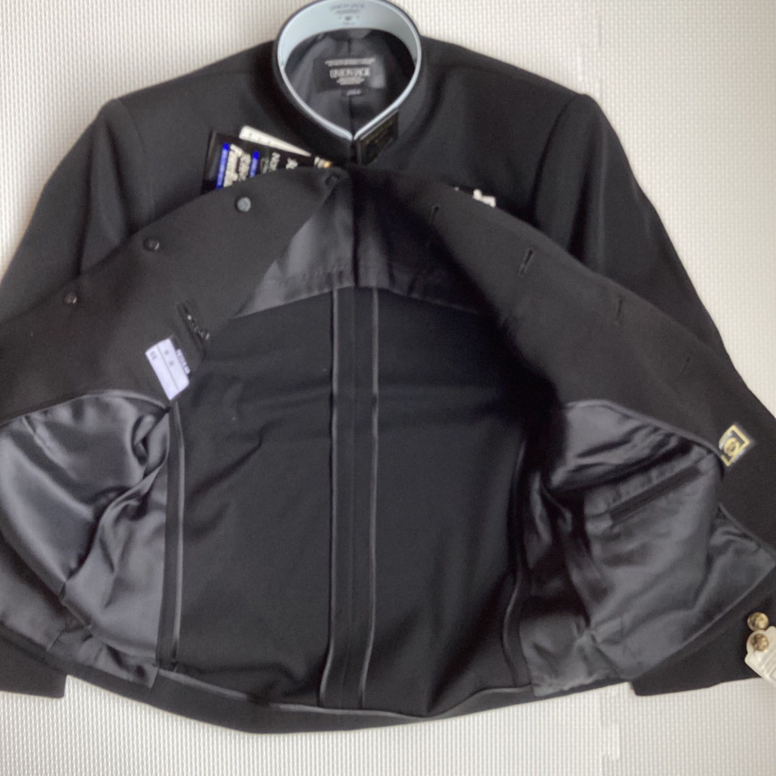 男子 学生服 155A 襟 1808 学生 学ラン 詰襟 標準型 ポリエステル80% 毛20% UNIONJACK DEEPBLACK