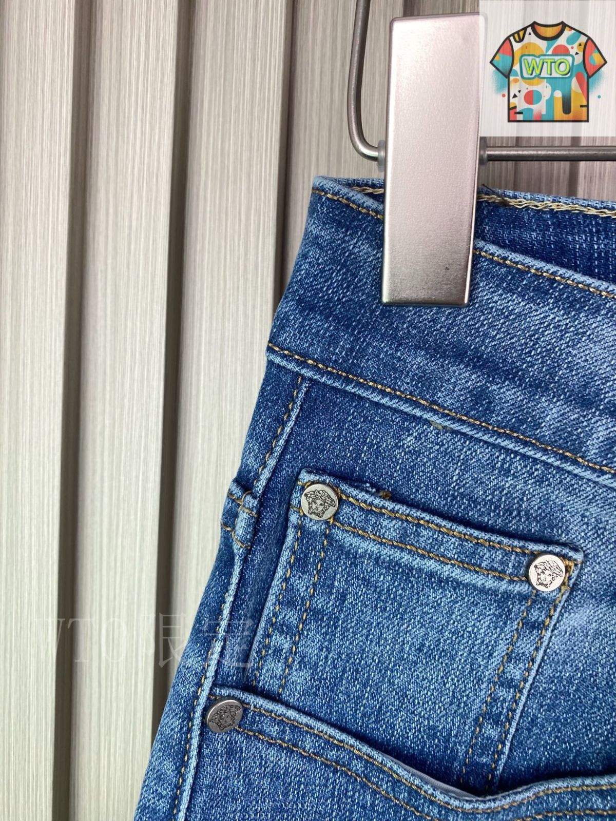 今日 Versace ストレッチ小直脚デニムパンツ-1