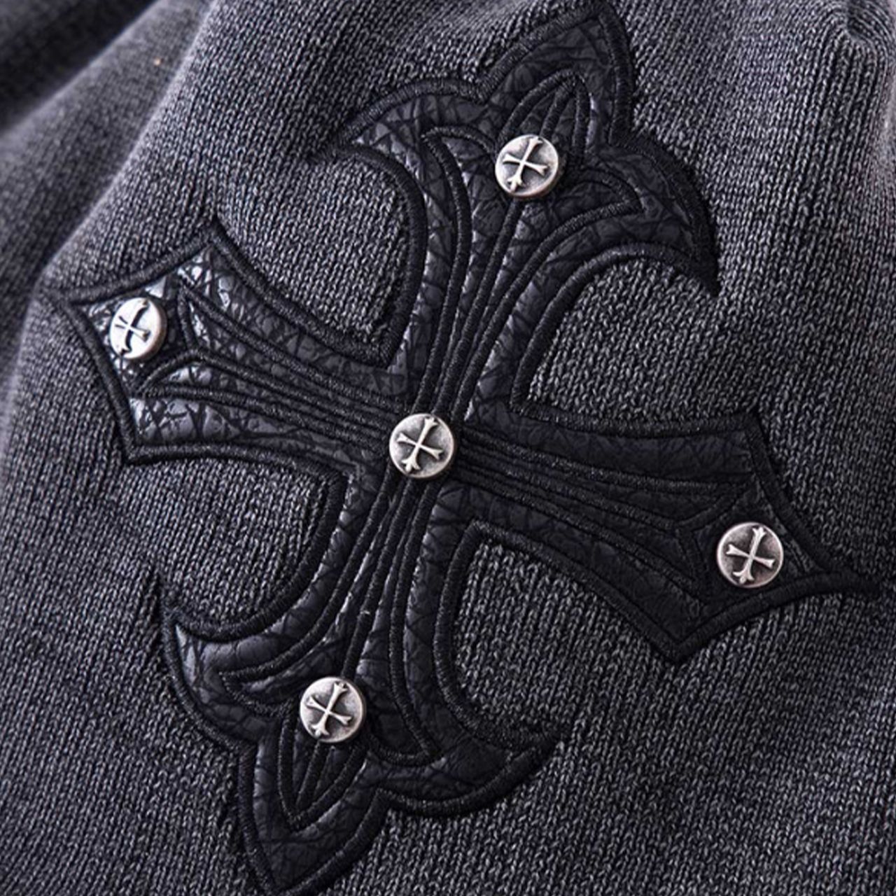 クロスモチーフの合皮とスタッズを組み合わせ、刺繍で叩きつけたビーニー。