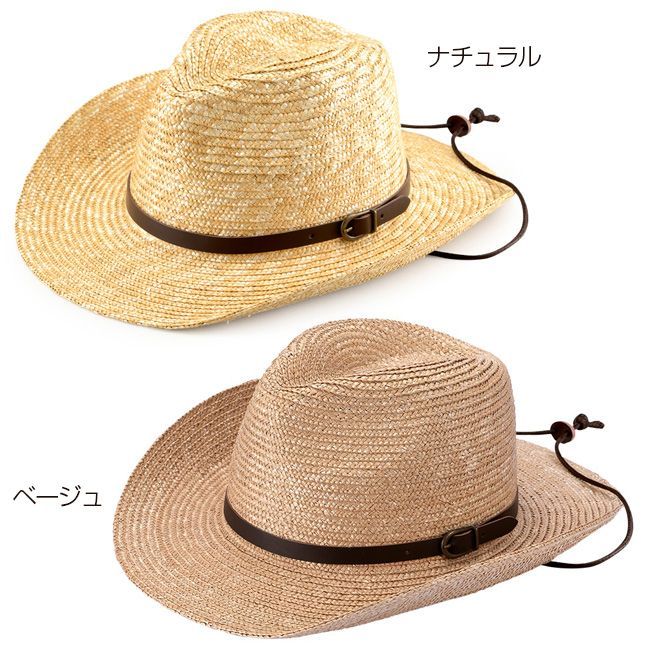 【素材】麦わら(太麦)、牛革、綿紐、ポリエステル(汗止め)、合金