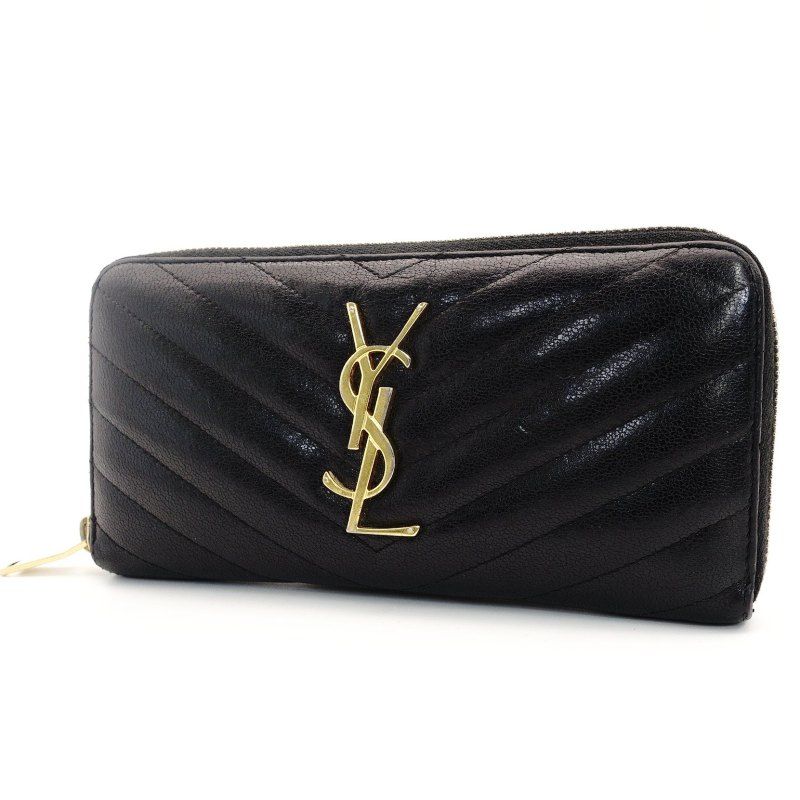 商品名 サンローラン SAINT LAURENT 長財布 ブラック YSL ロゴ 黒 レザー ジッパー ゴールド金具 7-7-753