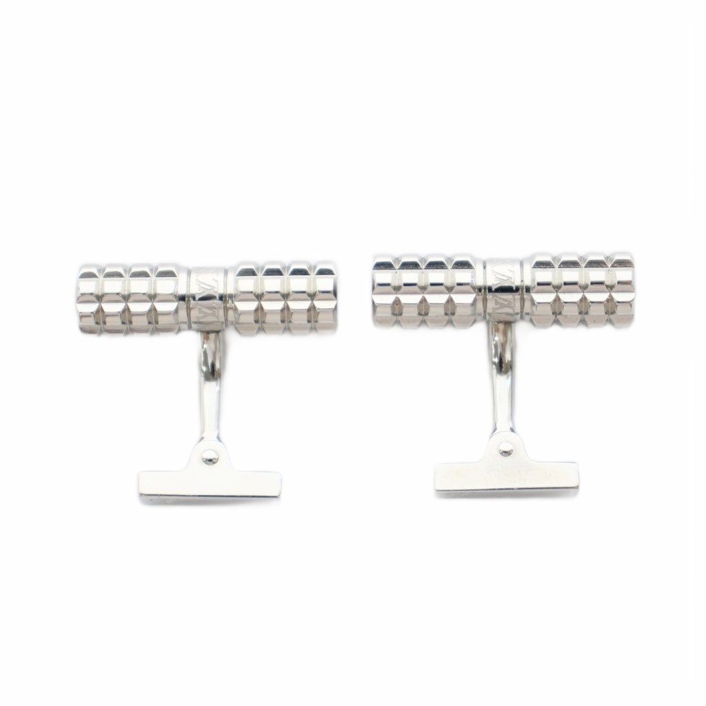 ルイヴィトン LOUIS VUITTON ブトンドゥマンシェットディジット カフリンク カフス メタル モノグラム ケース付き ダミエ シルバー 茶 ブラウン M 66358 YT OH