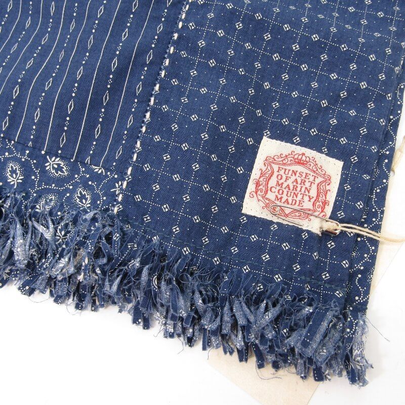 未使用 FUNSET OF ART ファンセットオブアート ストール SS2023FAG-154 小紋柄パッチワーク 刺し子 日本製 ネイビー
