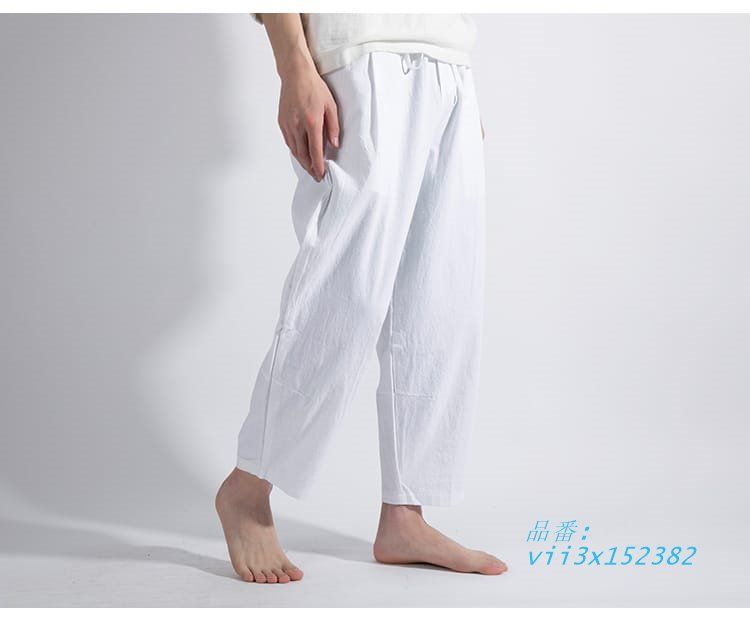 チャイナパンツ クロップドパンツ メンズ 男性用 中華風 カンフーパンツ 綿麻 春夏 チャイナボタン イージーパンツ 薄手 vii 3 x 152382