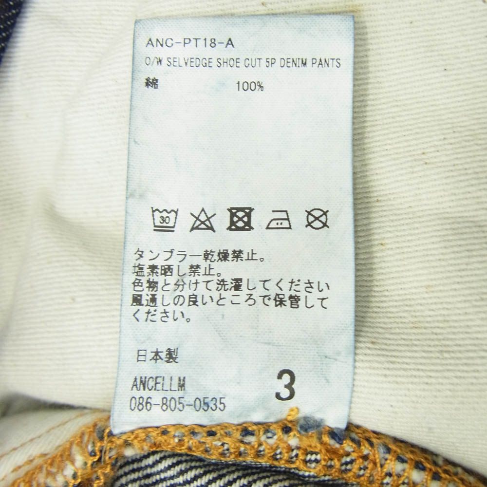 ANCELLM アンセルム ANC-PT 18-A O W SHOE CUT 5 P DENIM PANTS 5ポケット セルビッチ デニム パンツ インディゴブルー系 3