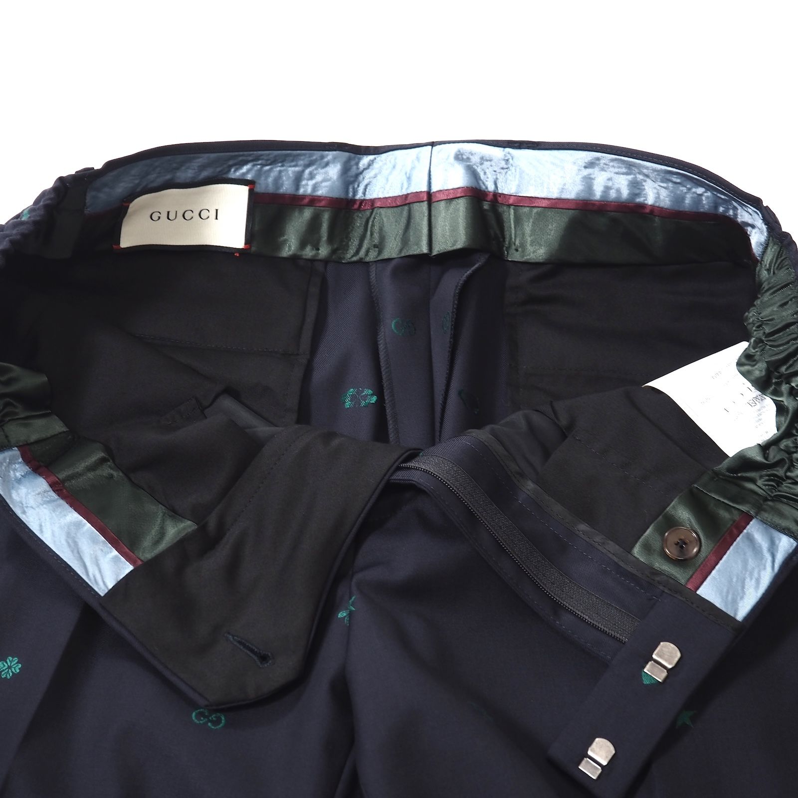 グッチ GUCCI ウール Bee刺繍 イージー スラックス トラウザー 50 ダークネイビー メンズ 5-YI 009