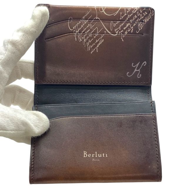 ベルルッティ E 1118 カリグラフィー 二つ折り カード入れ 名刺入れ レザー ブラウン Berluti メンズ 感 上品デザイン モデル