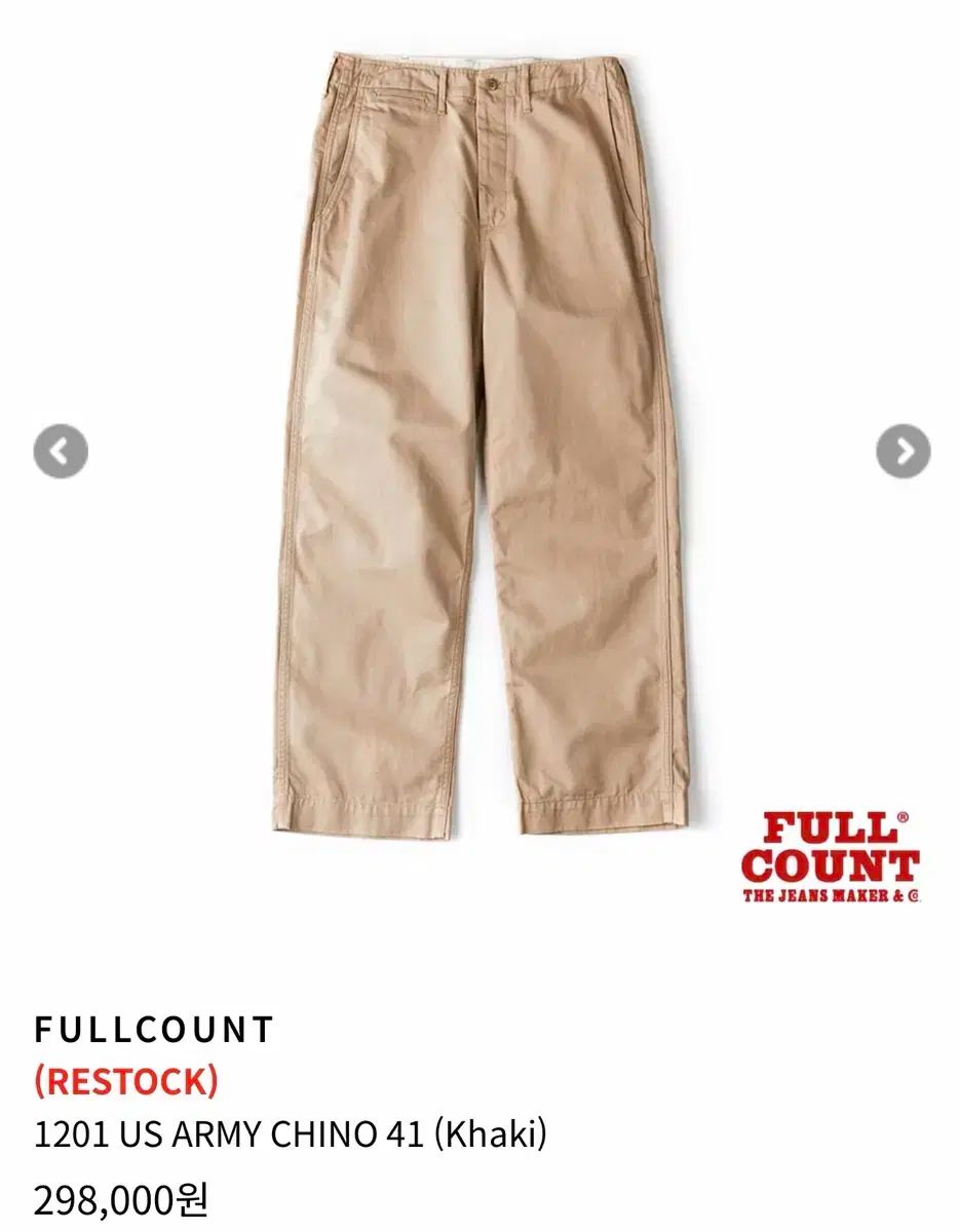 FULLCOUNT フルカウント 1201 US アミ チノ カーキ カラー 新品です。 32サイズで、フィットがとても綺麗です。