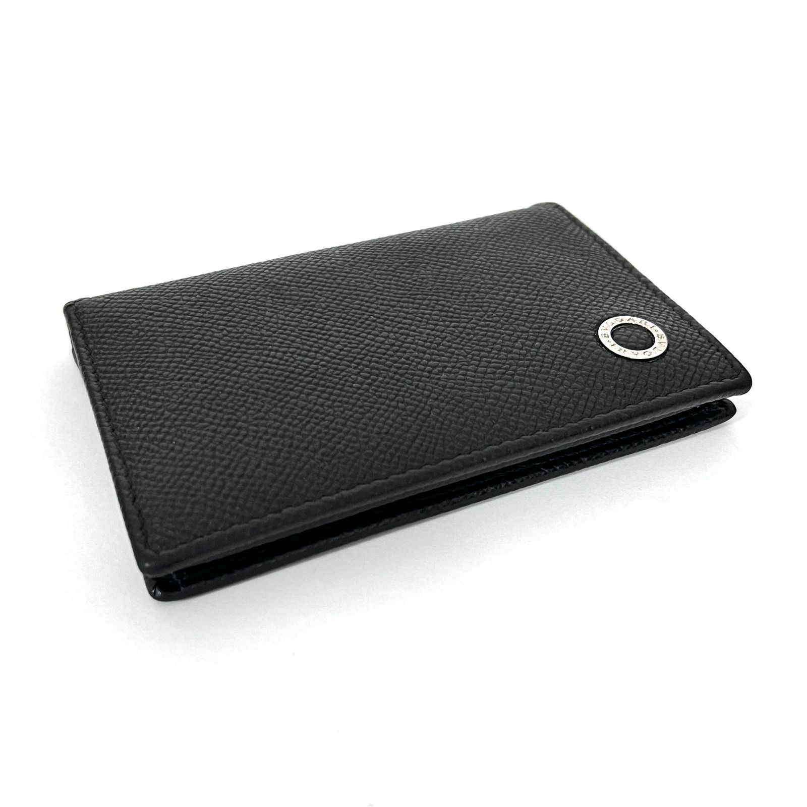 SD 2895 BVLGARI ブルガリ レザー カードケース 名刺入れ 30400 サークルリングロゴ マチ付き ブラック メンズ 金具シルバー