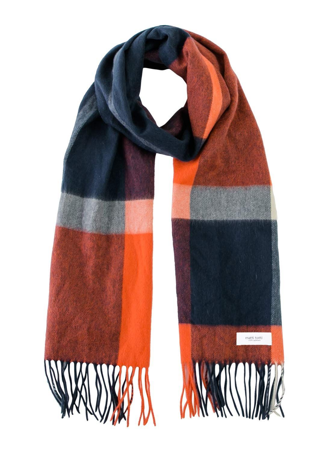 F_ネイビー オレンジ matti totti ネイビー×オレンジ カシミヤ マフラー カシミア 大判 厚手 メンズ チェック柄 チェック ストール 100 男性 ロング リバーシブル カシミヤマフラー カシミアマフラー ギフト プレゼント B 0