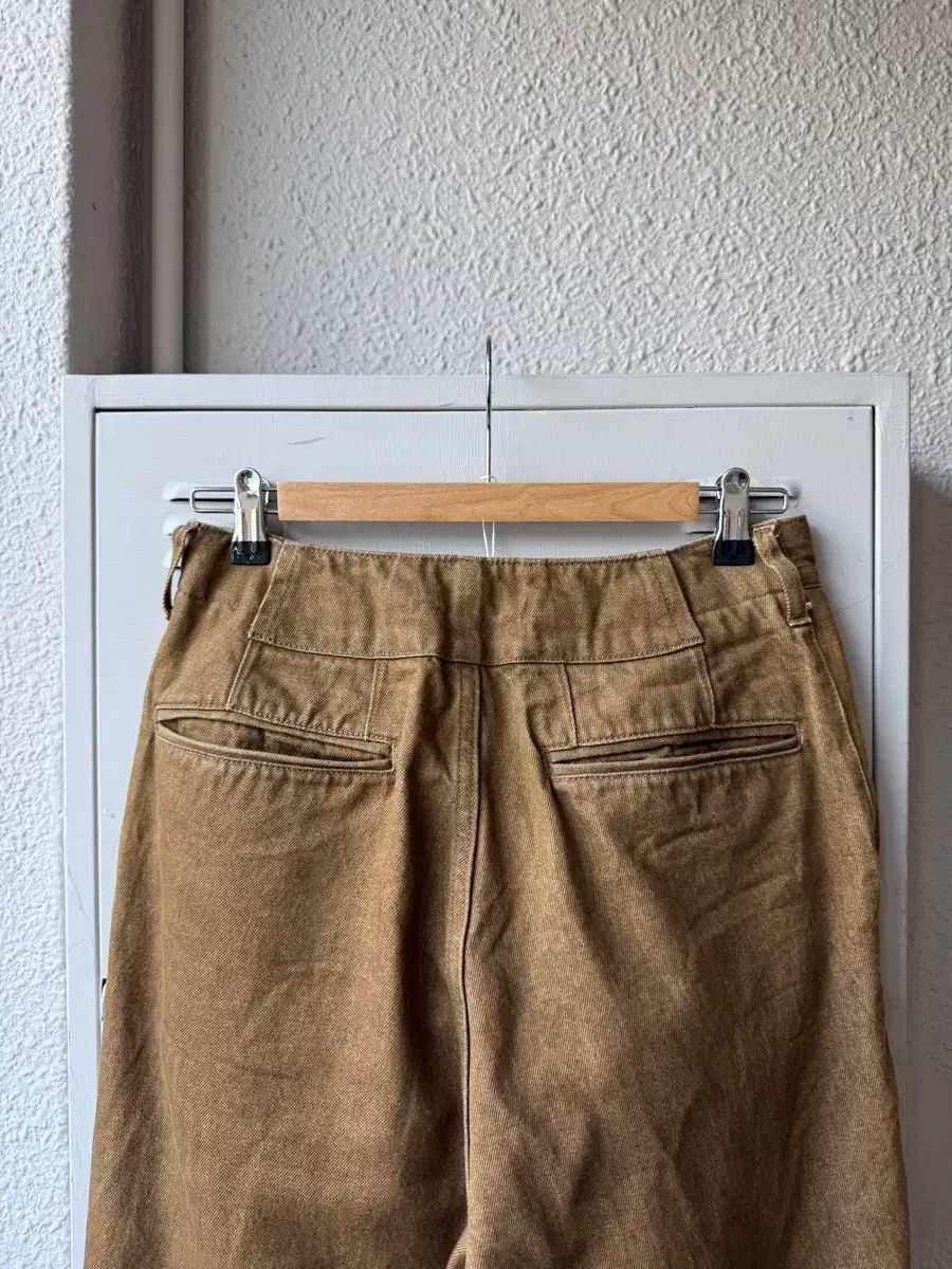 日本 の セレクトショップ アダム エ ロペ の PBブランド で 展開 する コットンパンツ。厚みがあり、ヴィンテージ な 色合い が 魅力的。
