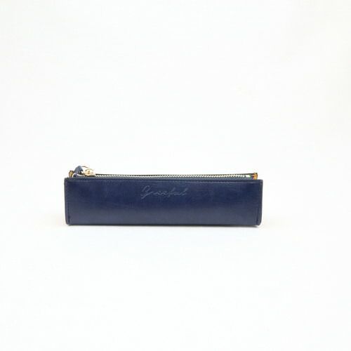 ベーシックカラーをベースにサイドに色を利かせたシックなペンケース。6本程度収納可能。【検索キーワード】#革小物#Greeful#ネイビー
