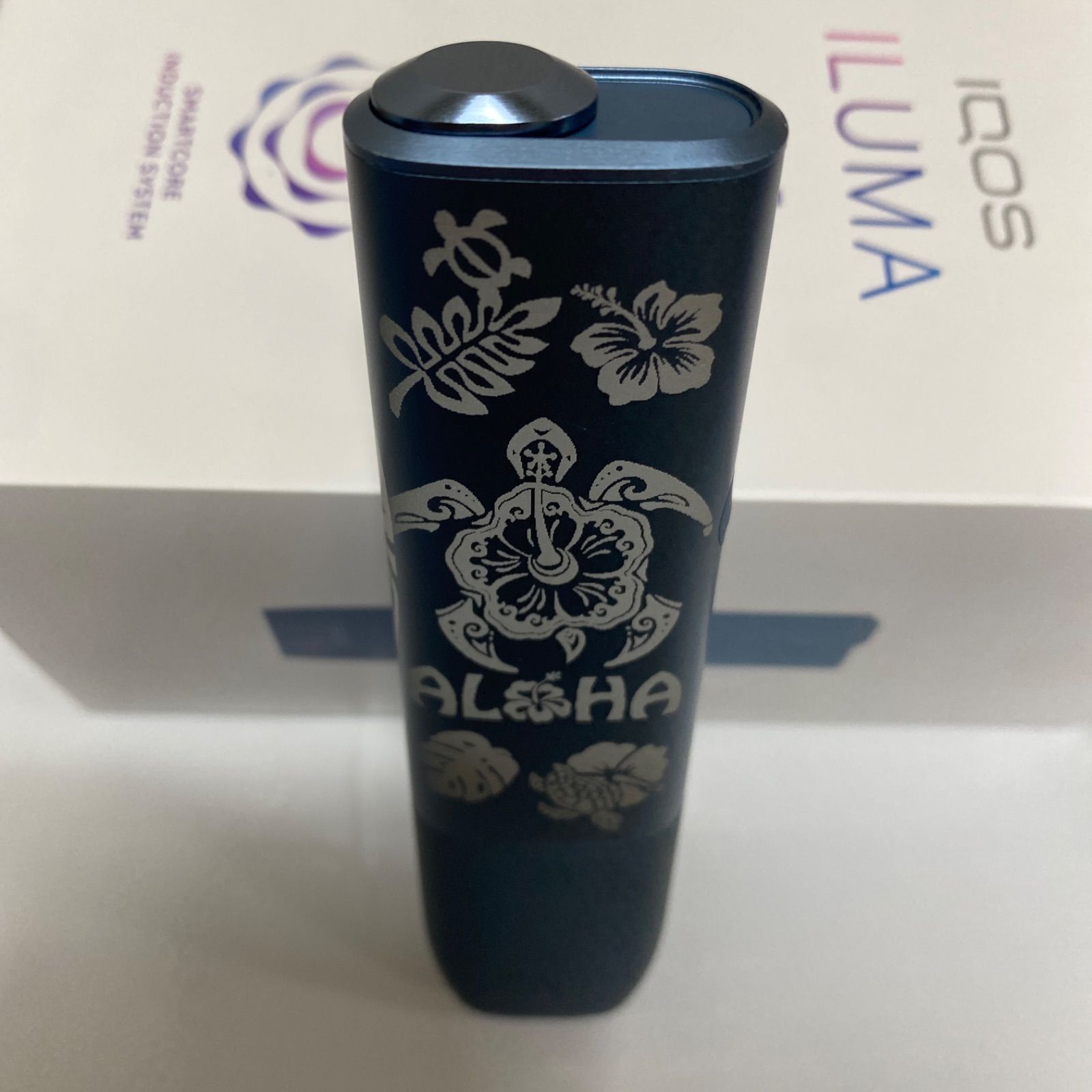 iQOS ILUMA ONE アイコス イルマ ワン ハイビスカス ホヌ レーザー加工 アズールブルー 青 ハワイアン トライバル モンステラ ヤシの木 サーフボード アロハ プレゼント ハワイ ポリネシア