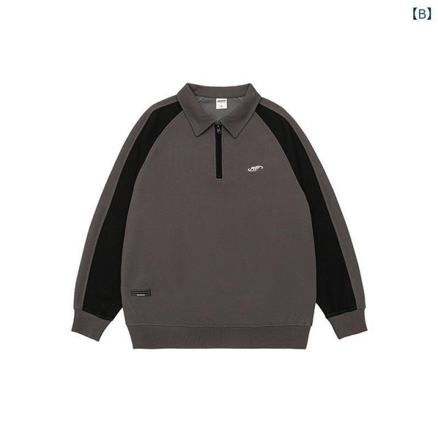 2 XL 秋冬 コーデ メンズ 服 シンプル ファッション オシャレ 大人 かっこいい 大きいサイズ ストリート 紳士服 厚手 ハーフ ジップ スウェット シャツ ブロック カジュアル ジャケット アメリカン レトロ 長袖 ポロ