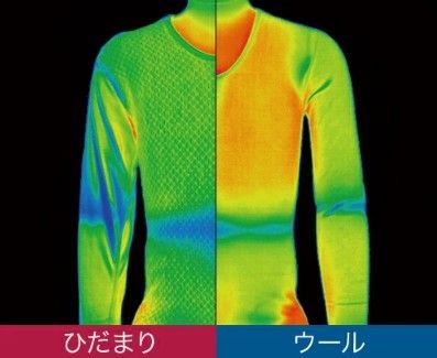 空気層をプラスした3重構造(表・中・裏)編地。ひだまり健康肌着の中では最高の保温力。