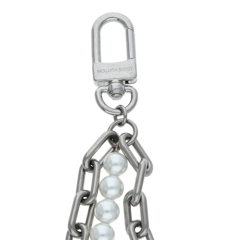 ルイヴィトン M 02606 バッグチャーム チェーンベルト パール LVロゴパール シルバーウォレットチェーン メンズ