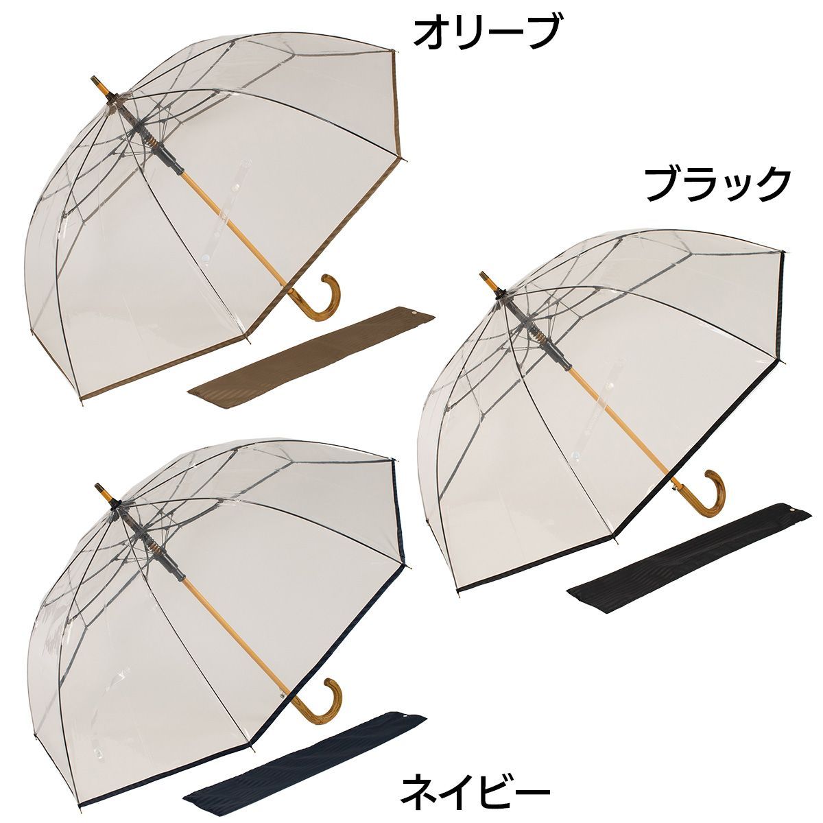 素材にこだわった気品あふれる紳士用ワンタッチ木棒透明ジャンプ傘。