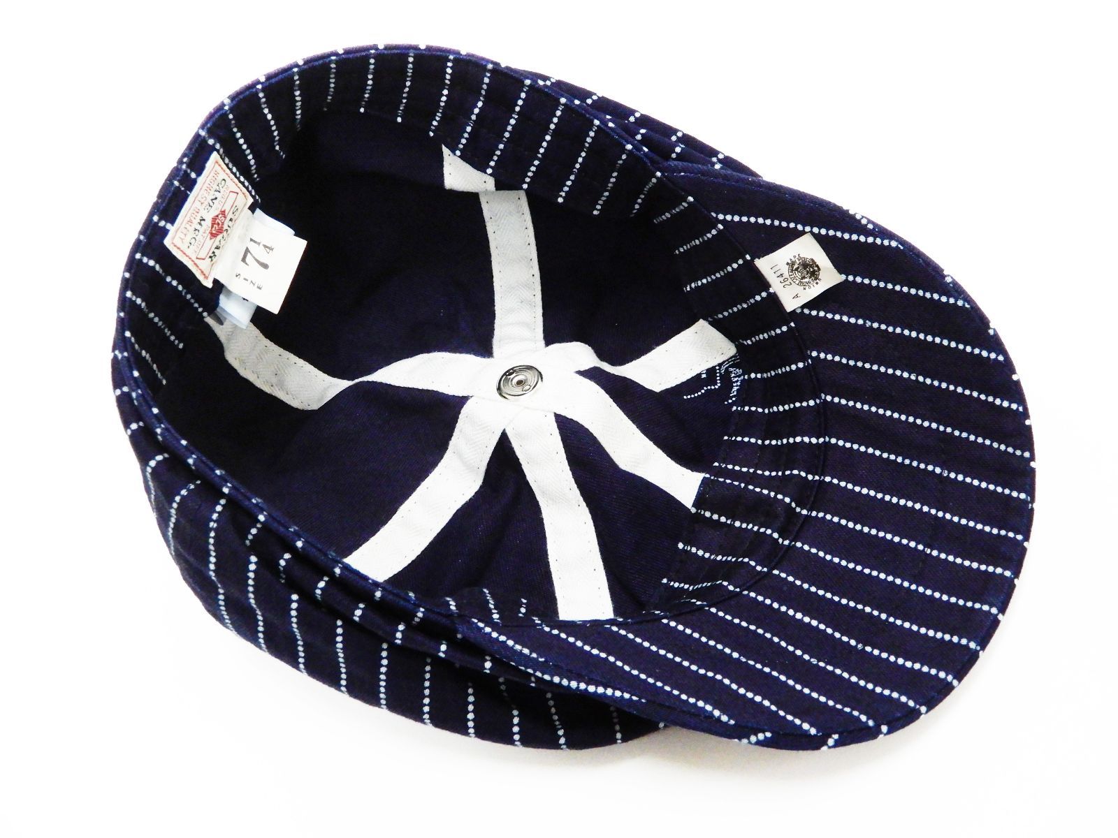 東洋エンタープライズ社(Toyo Enterprises)のワークウェアレーベル・SUGAR CANE(シュガーケーン)のウォバッシュストライプアップルジャックキャップ(メンズ ハンチングスタイルワークキャップ 帽子)です。