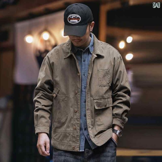 3 XL - メンズ ファッション 服 男性用 オシャレ シンプル 大人 かっこいい 大きいサイズ ストリート 紳士服 グリーン アメリカン レトロ ウォッシュ カジュアル シャツ ジャケット トップス ワークジャケット
